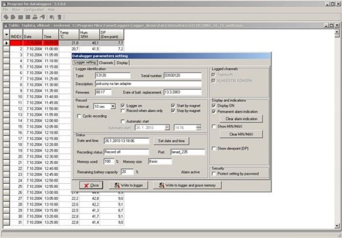 Program is designed for communication with data loggers, read out the configuration of the device and setting up the parameters.